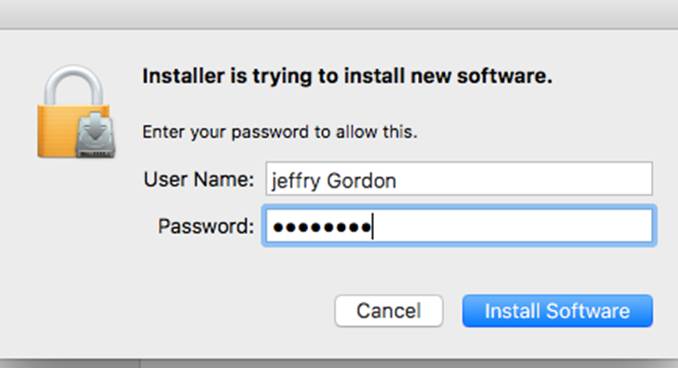 Again, put in your Apple username and password and click “Install Software”.