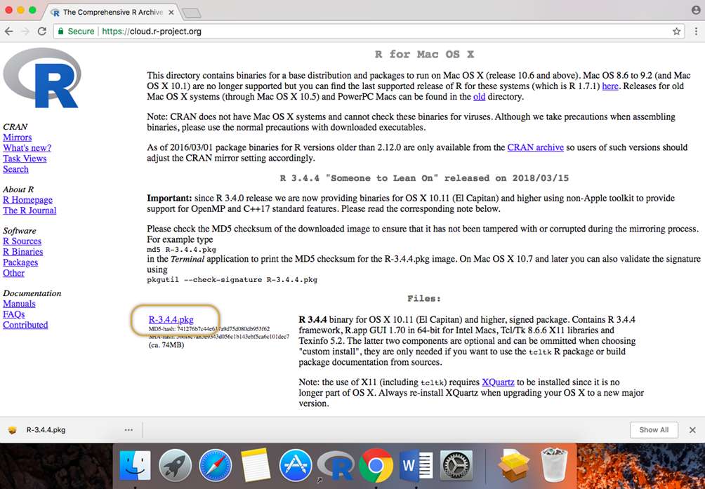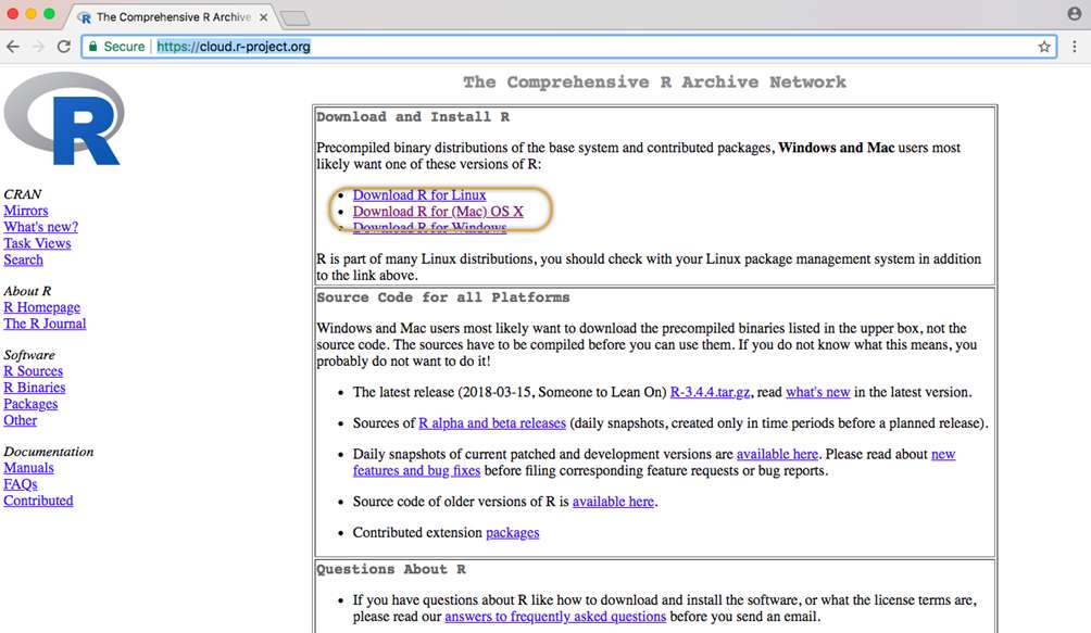 Click the download “R for (Mac) OS X”