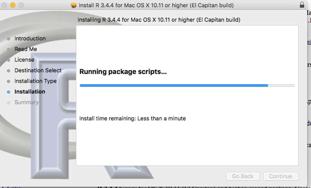 The process for installing R-Commander on your Mac is pretty straightforward. If you are using MacOS 10.11 or higher you will first need to install XQuartz. XQuartz is the environment that R and R-Commander reside in on the Mac. If your OS is older than 10.11 you may already have XQuartz installed as part of the MacOS (but frankly you shouldn’t be running an OS that old). Go here: