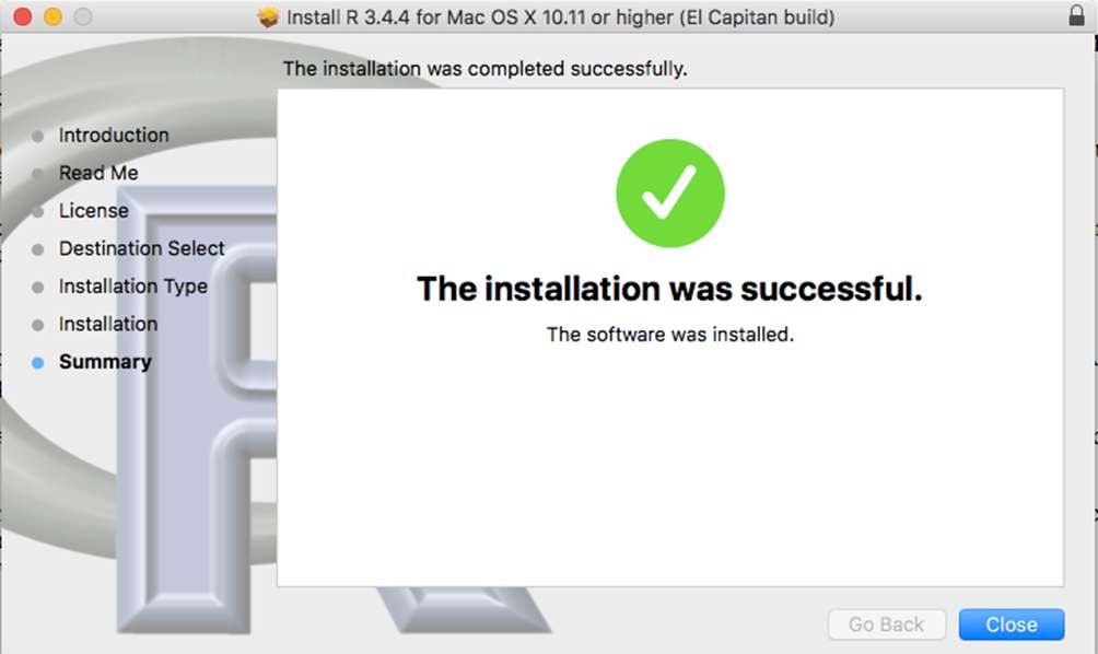 You will be notified when the installation is successful. Click “Close”.