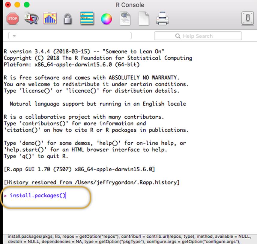 At the prompt, type in (with NO spaces and all in lower case) install.packages()
