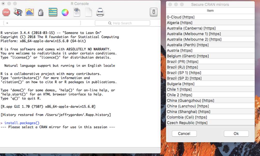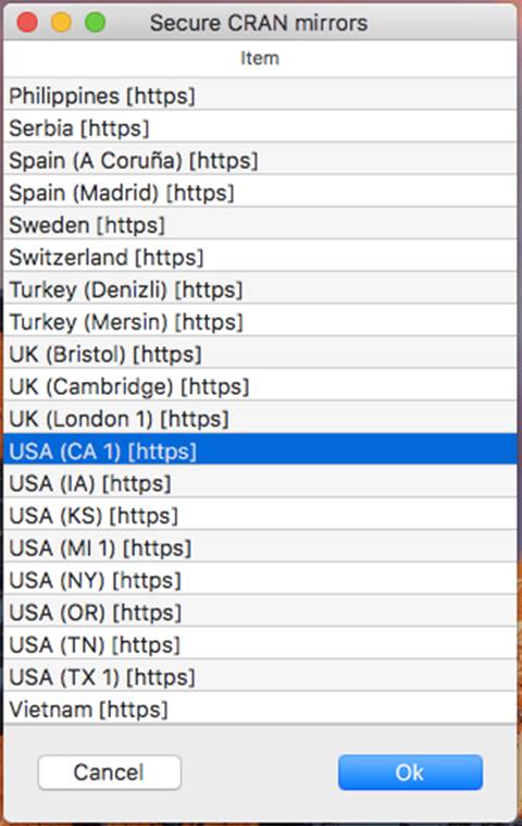 Click in the window and scroll down (it helps if you have a mouse as opposed to the computer’s trackpad) to USA (CA 1) [https]. This is the Berkeley site and is generally the most current.